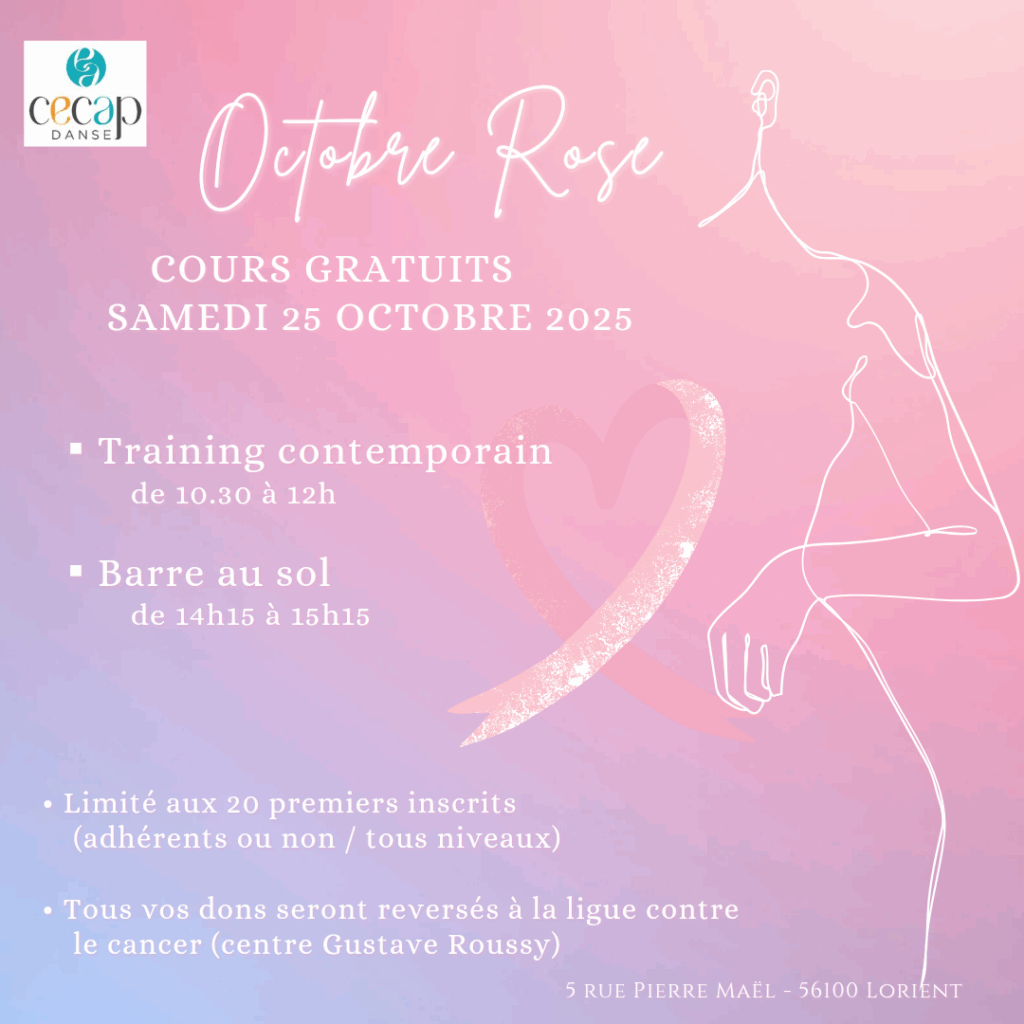 Dans le cadre d’Octobre Rose, le CECAP se mobilise et vous propose deux séances le samedi 25 octobre :